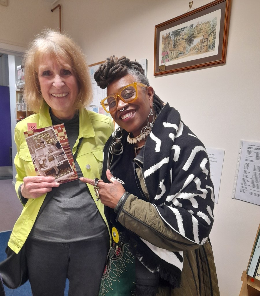 Khadijah Ibrahiim is a Leeds lass like me. And that’s where the similarity ends. I felt like a dull brown sparrow beside a flamingo when I went up to receive my raffle prize — her book of poems. She has charisma oozing from every pore. Though Yorkshire born and bred, she sang her poems with a lyrical Jamaican beat of calypso and reggae. She told of an old lady selling callaloo, a spinach-like plant. I’ll look out for some when I’m next in Leeds market.