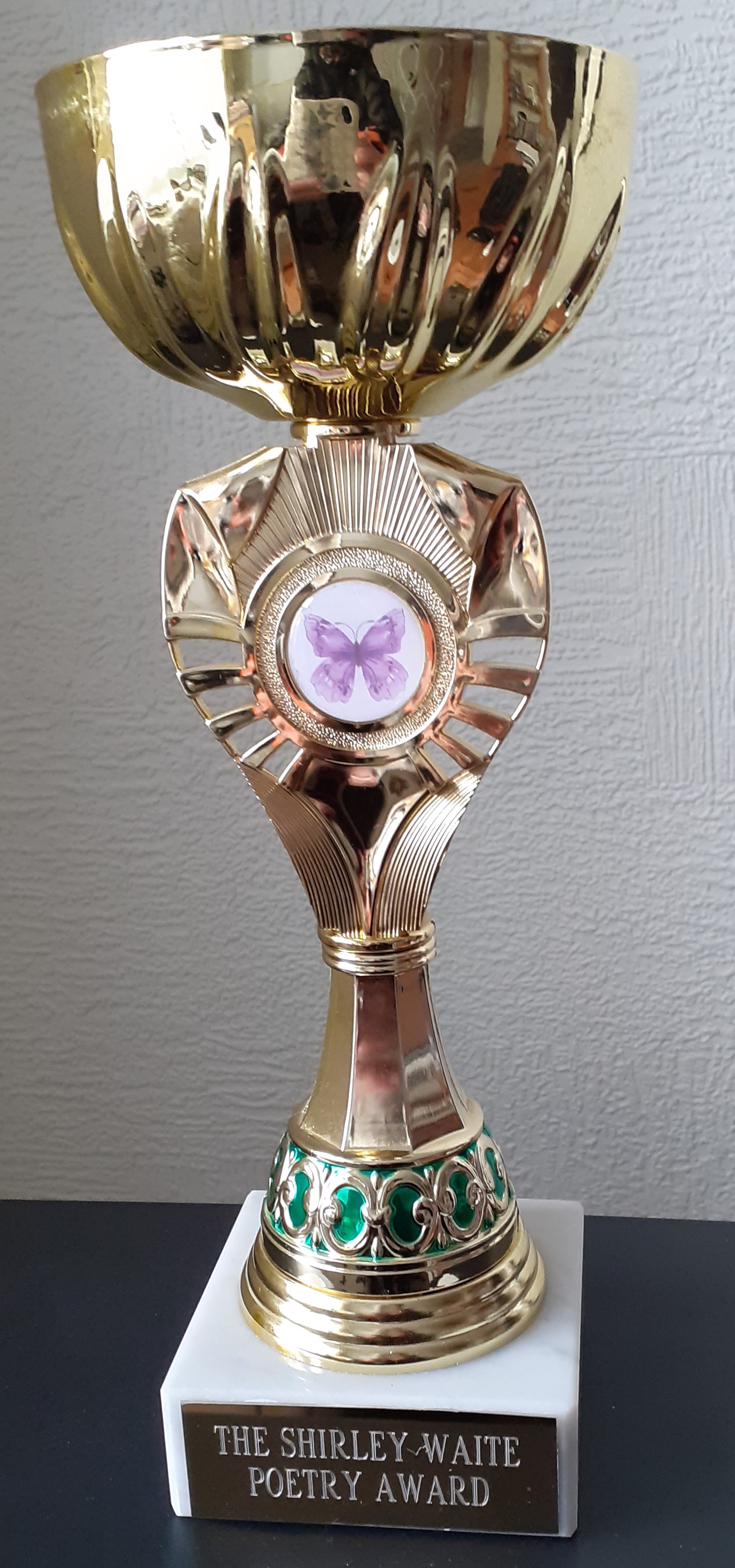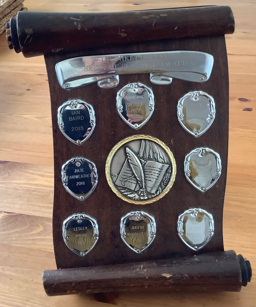 The committee decided at an AGM to run the competition as a celebration of poetry in Shirley’s memory in line with the National Poetry Day’s chosen theme, stipulating that a non-member local poet judge the competition each year. The committee also sanctioned that a small monetary prize for 1st, 2nd and 3rd places would be offered, with the winner holding the cup until the next competition.
